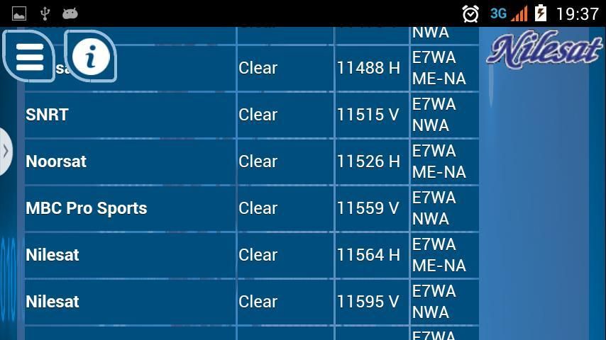 नील सैट उपग्रह उत्तरी अफ्रीका और सहारा रेगिस्तान के बड़े हिस्से को मध्य पूर्व से सबसे ज्यादा देखे अरब और Ngotaitth आपूर्ति है .. कि चैनलों लगातार आवृत्तियों बदल रहा है और यह समय-समय पर Jdedeh चैनलों दिखाने रहे हैं।