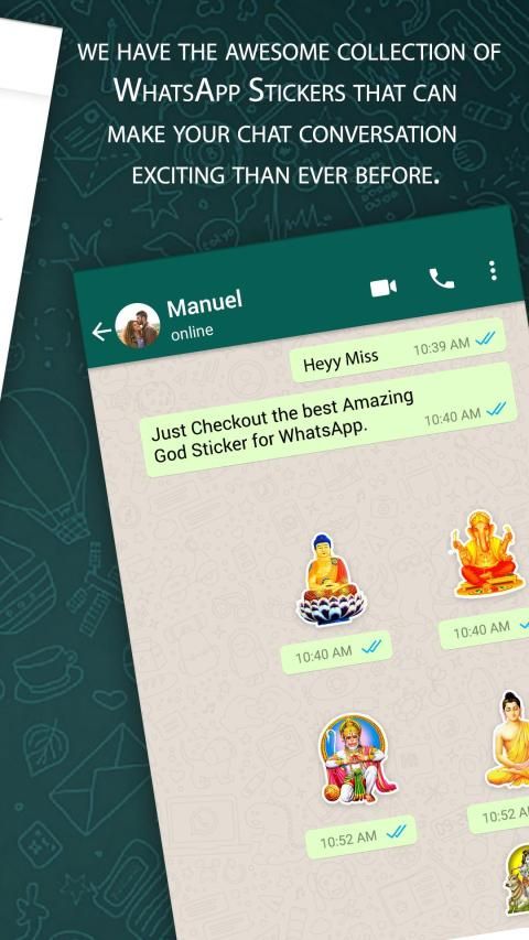 न्यू गॉड स्टिकर के साथ अपनी चैट को और अधिक रोचक बनाएं बाजार में एक नई शैली के साथ व्हाट्सएप का उपयोग करने के लिए एक नया चलन है, इस एप्लिकेशन के माध्यम से आप स्टिकर का एक अद्भुत संग्रह प्राप्त कर सकते हैं जिसके साथ स्टिकर द्वारा अपनी भावनाओं को साझा करें।