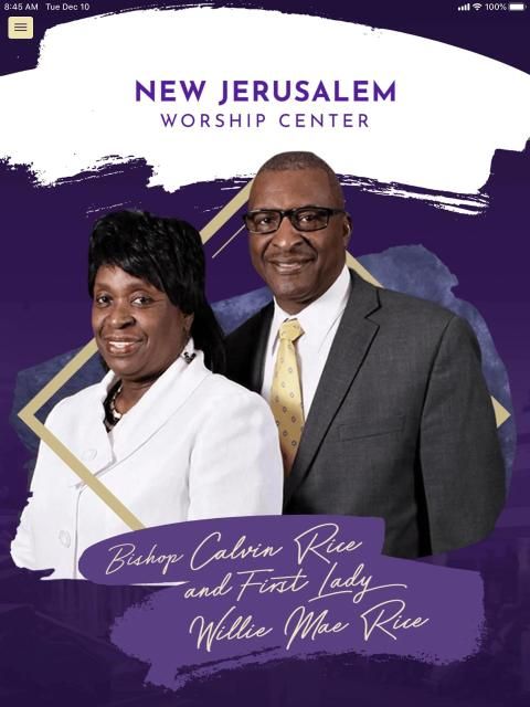 New Jerusalem Worship Center is located in Jamaica, New York and is led by Bishop Calvin Rice. It is New Jerusalem's mission to be of sound biblical teaching, committed to the authority of Scripture, evangelistic concern, loving fellowship, with emphasis on family and holy living as well as acceptance of people everywhere.
