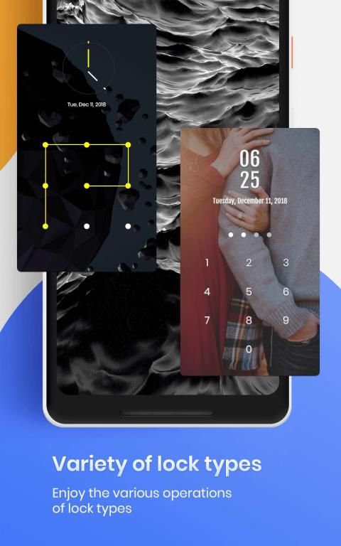 New Phone Screen Lock with HD Wallpapers Pro has PIN Lock、Pattern Lock and Fingerprint Lock. choose your favorite style to lock apps. Much safer for you to lock apps. No more worry people may peep the password or pattern. More safe! New Phone Lock with HD Wallpapers Pro is a application which is used for secure your phone used to third party. This is not exactly a high security mobile phone locker, but it will protect your favorite mobile device from curious looks since now it is not enough to only slide to open, you also have to press your finger and unlock your phone with fingerprint simulation.