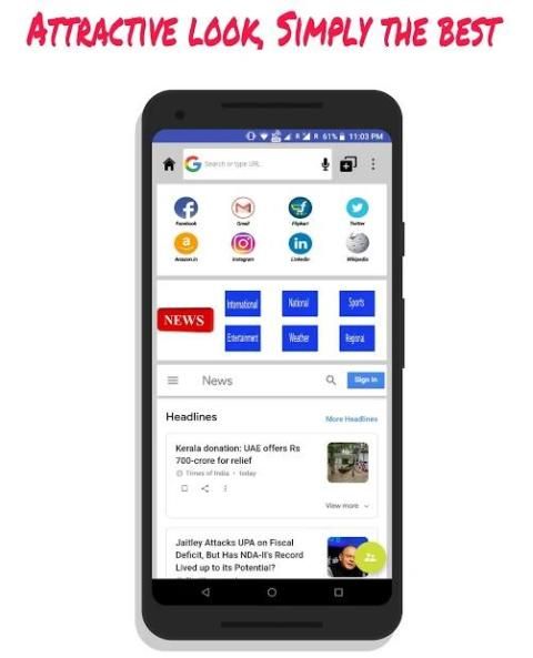 It is the first and only browser in the world to have Voice Assistant. It also comes with very high speed and secured browsing which will give you the ultimate browsing experience. The browser will also give you lots of unique inbuilt features like Webpage loading percentage, Scanner, Voice search, Cache and Cookies clearer, Location clearer along with other common features like Incognito Mode and Desktop mode, Multi tabs, Multiple Search Engine (Google, Bing, Yahoo, DuckDuckGo), history, bookmarks. The browser also comes with language option. The homepage of the browser will also give you many shortcuts for easy browsing. There is also a News section of different categories for you to get updated with the latest happening around the world.