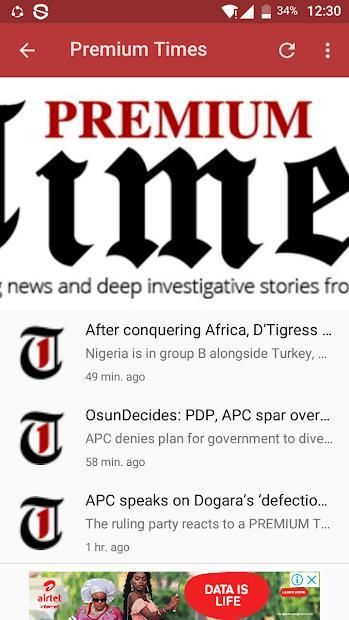 This Application is probably the best Nigerian Newspaper App in the store so far. It brings you news as they break, you just need to refresh your favorite Newspaper frequently. The app brings you the latest news in Politics, Entertainment, Business, Economy, Sports, Art, Technology, Health and Technology from various media house in Nigeria which include: