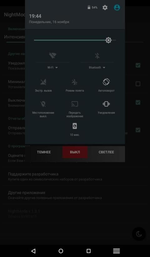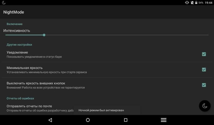 यहां तक कि कम से कम चमक उपकरणों, असुविधा आँखें रात में डिवाइस का उपयोग करते समय। रात मोड यह संभव यह कोई अतिरिक्त अपशिष्ट बैटरी से बचने के लिए बनाता है।