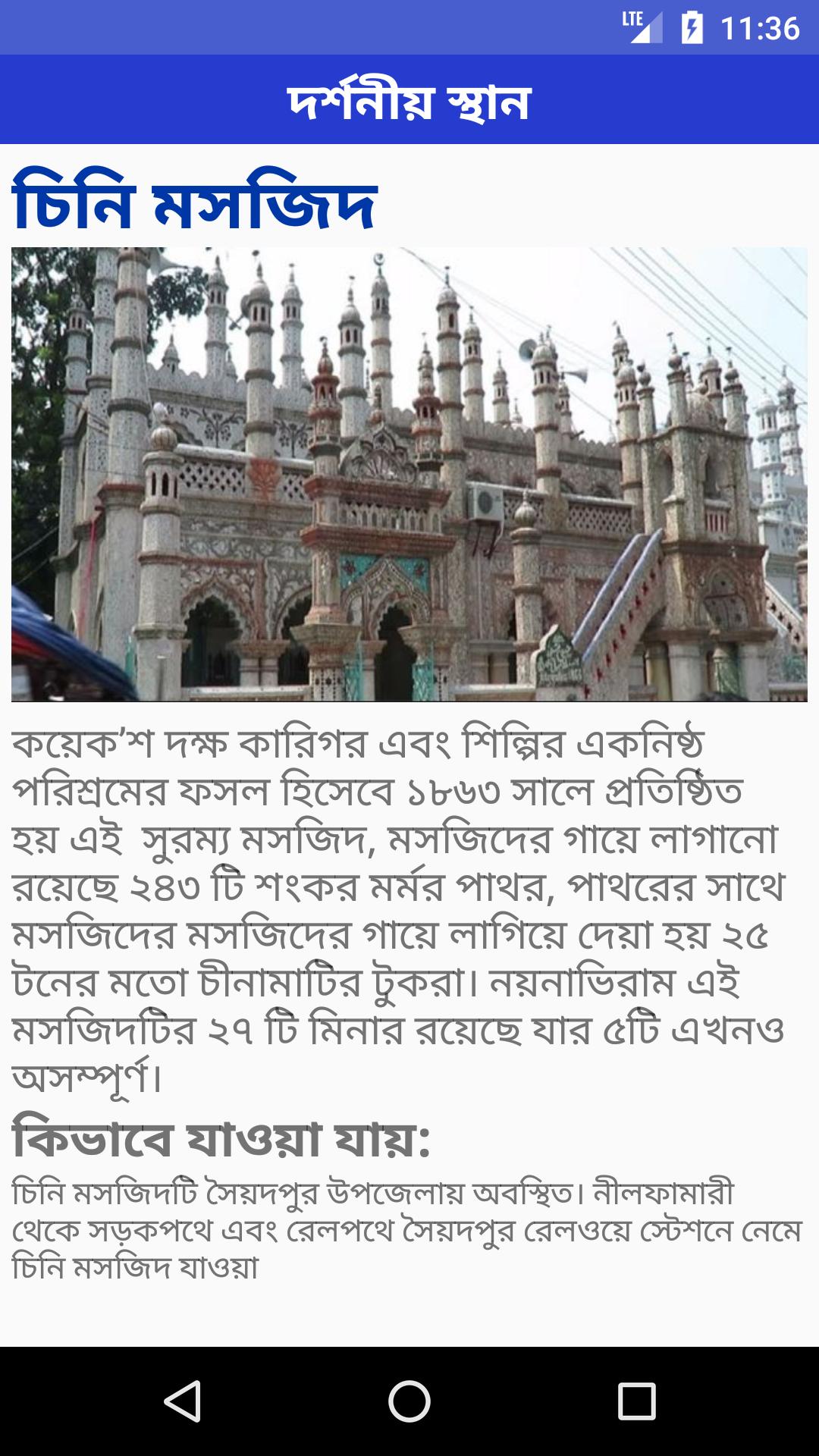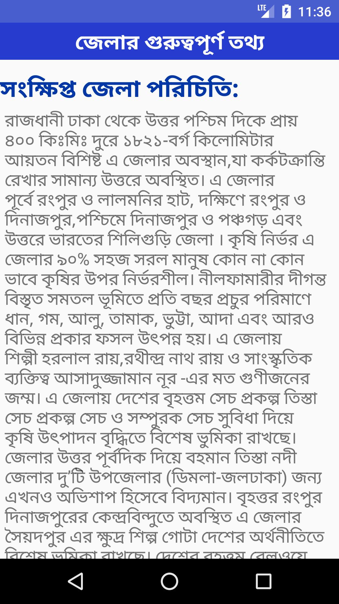 নীলফামারী জেলার মানচিত্র সহ জেলার সংক্ষিপ্ত বর্ণনা এবং নীলফামারী জেলার নাম করণ নিয়ে এবং জেলার সরকারি বেসরকারি সহ বিভিন্ন প্রতিষ্ঠান এর বিস্তারিত বর্ণনা নিয়ে গঠিত এ অ্যাপ টি।