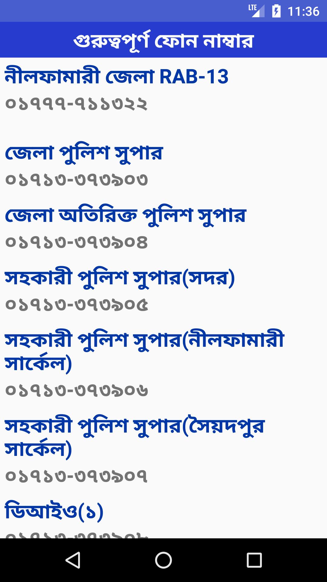 ৪। গুরুত্বপূর্ণ ফোন নাম্বার- এখানে জেলার পুলিশ বাহিনী, আরএবি বাহিনী, ফায়ার ডিফেন্স এবং অ্যাম্বুলেন্স এর ফোন নাম্বার দেয়া আছে।
