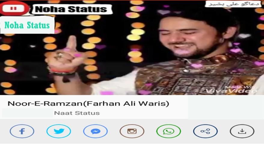 (यह एक "नोहा स्टेटस" ऐप है। लिरिक्स के साथ हर थ्रेनोड स्पीकर का यह ऐप स्टेटस उपलब्ध है। इसके अलावा नैट स्टेटस, मनकबत स्टेटस, कसीदा और मजलिस स्टेटस हैं। यह सभी स्टेटस का वर्गीकरण है। आप डाउनलोड ऑप्शन पर क्लिक कर सकते हैं। और वह डाउनलोड आपकी फ़ोन गैलरी में प्रदर्शित होगा।)