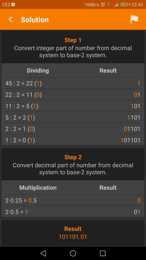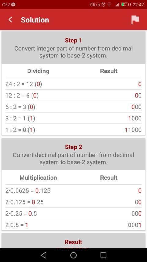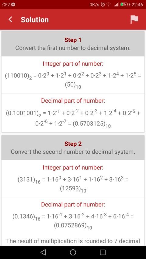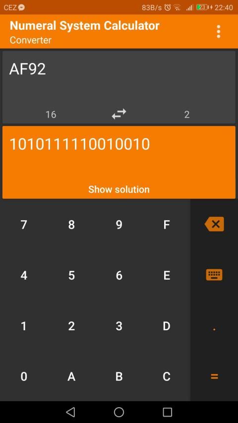 is a simple and smart application for calculating and converting numbers between numeric systems. The application can count any arbitrary long, decimal or negative numbers and convert them between systems. App is able to show the solution algorithm. It supports system with bases from 2 to 36.