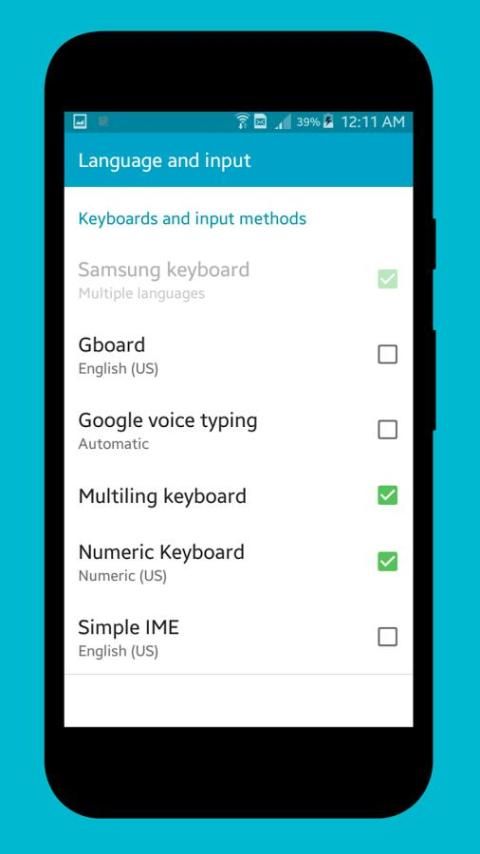 किसी भी डिफ़ॉल्ट कीबोर्ड पर चयन> - -> जोड़ें क्लिक करें कुंजीपटल - संख्यात्मक कुंजीपटल पर जांच> स्थापना के लिए जाने -> का चयन भाषा और इनपुट: 1. आप आप एंड्रॉयड स्मार्ट फोन में कीबोर्ड को सक्रिय करने की जरूरत है