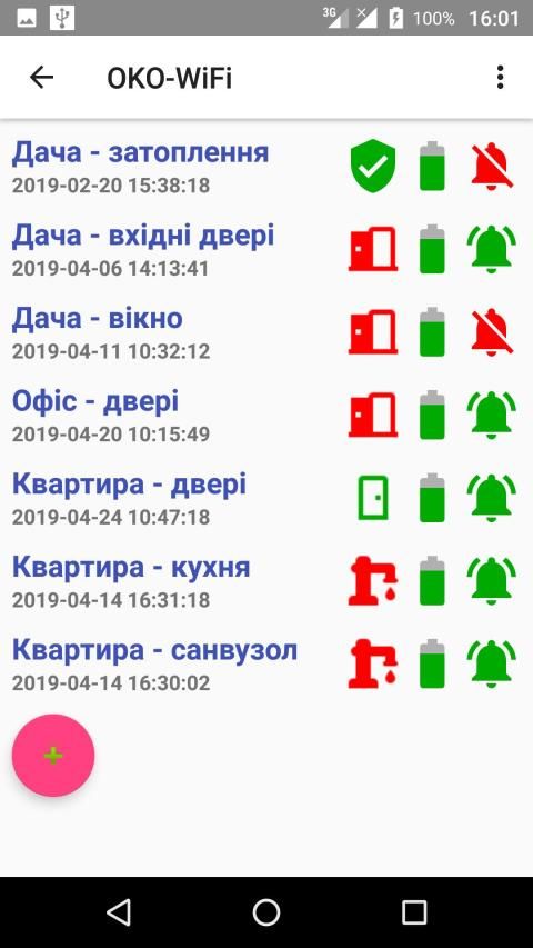 С помощью этого приложения пользователь получает push-уведомления при срабатывании датчиков OKO-WiFi (геркон, затопление).