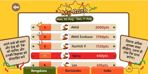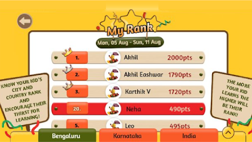 ★ लीडरबोर्ड: अपने बच्चे के शहर की रैंक को जानें, जितना अधिक आपका बच्चा सीखता है उतना ही उच्च होगा उनका शहर और देश रैंक!