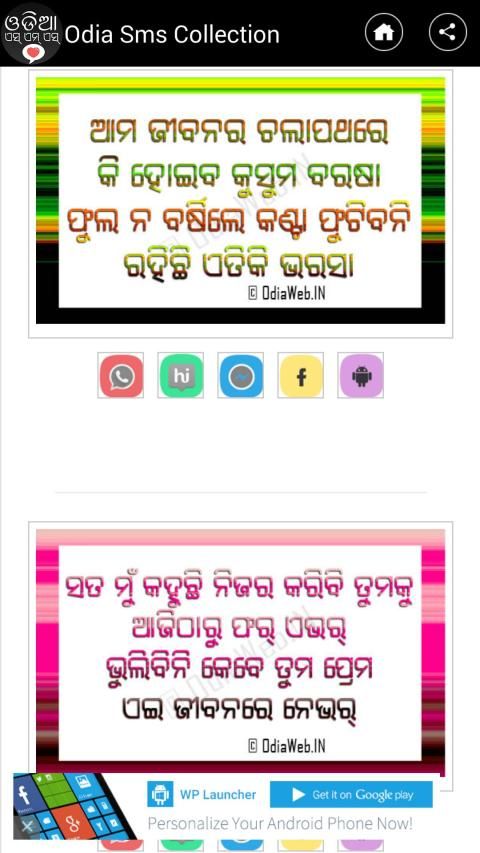 ओडिशा के ही आवेदन odia भाषा में एसएमएस का सबसे बड़ा संग्रह है। यह स्थापित करने के लिए और किसी भी सामाजिक नेटवर्क पर अपने दोस्तों के साथ एसएमएस साझा करने लगते हैं।