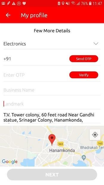 using Gmail or Facebook login. As a next step, the seller updates his/her mobile number, the product category and store details.