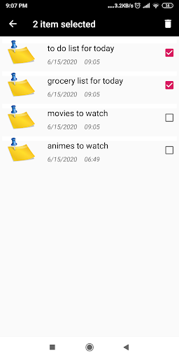 -डेली नोट (कई नोटों को चुनना और हटाना भी संभव है)