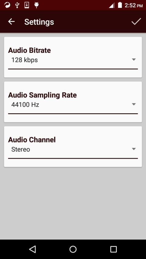 अब आप ऑडियो बिट दर, ऑडियो नमूना दर और ऑडियो चैनल, सेटिंग के तहत निर्धारित कर सकते हैं।