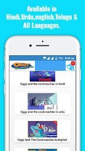 Oggy कार्टून अनुप्रयोग। Oggy और उर्दू, हिंदी, तेलुगु, अंग्रेजी में तिलचट्टे एपिसोड