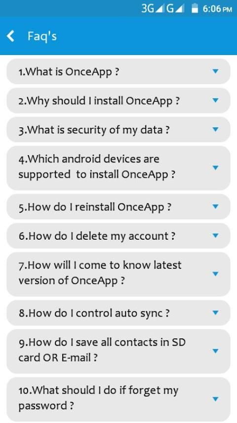 OnceApp is a backup support application. If your mobile is lost, theft, damaged or all your contact numbers are deleted, it can be retained by installing our application. It is safe, secure and user friendly with professional user interface.