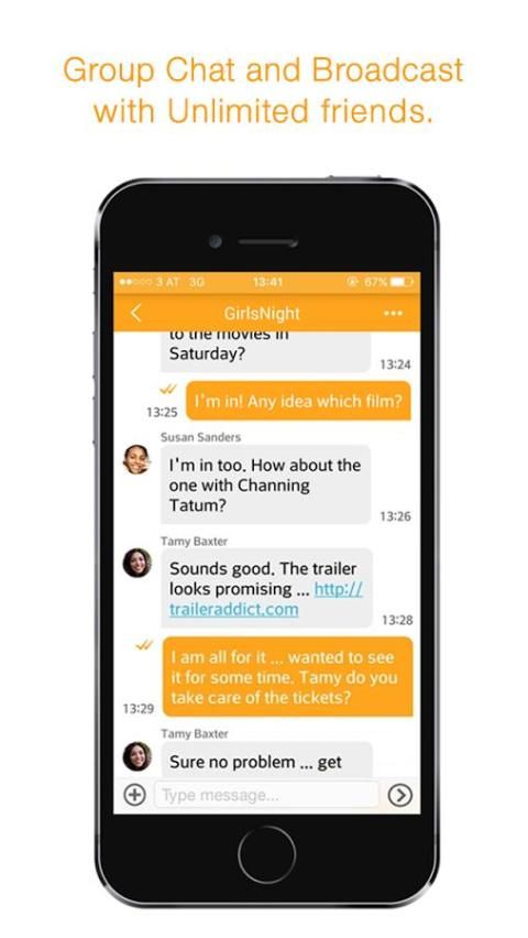 + असीमित प्रसारण चैट: मित्रों, सहयोगियों और व्यावसायिक भागीदारों के लिए बार का ट्वीट दे या एक ही समय में अलग-अलग लोगों के लिए अपने विचारों और योजनाओं को भेज देते हैं।