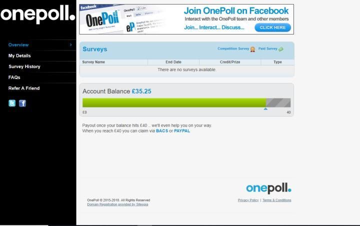 Onepoll also offers a referral program whereby you can earn 50p for every friend or family member who you introduce. In case their earnings reach 20 pounds, you will be entitled to making 1 pound. A short time later after they earn 40 pounds, you will earn 2.50 pounds.