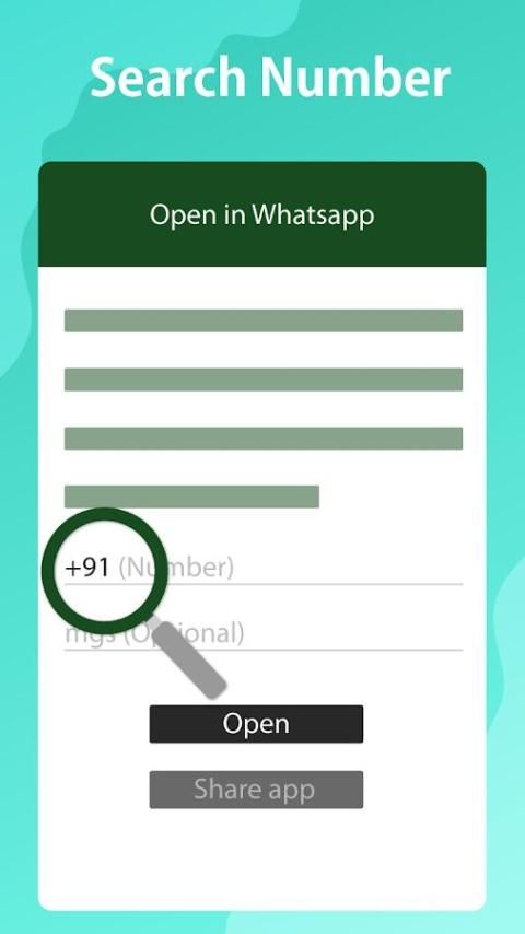 ध्यान दें: यह एप्लिकेशन को किसी भी नंबर आप दर्ज के साथ एक चैट खोलने के लिए सरकारी WhatsApp सार्वजनिक API का उपयोग करता।