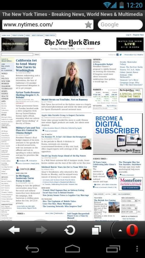 Android के लिए Opera Mobile 12.1 धोखाधड़ी सुरक्षा, वेब मानकों के लिए सर्वश्रेष्ठ समर्थन और मोबाइल साइट में बेहतर संगतता के साथ आता है.