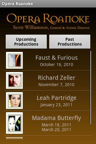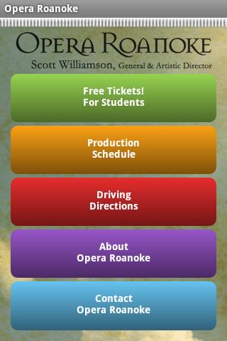 This application provides uptodate information about the performances and cast of opera Roanoke. It also submits ticket requests and provides driving directions