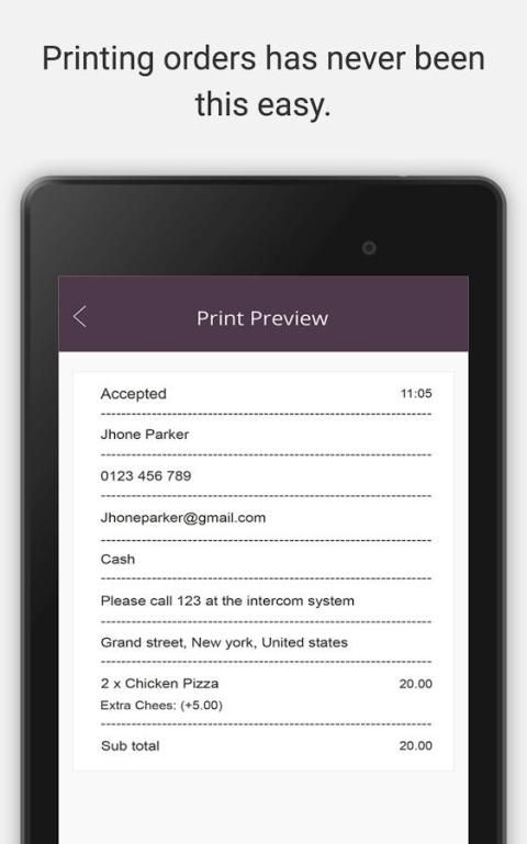 अपनी वेबसाइट या देशी क्षुधा पर उपयोगकर्ता के आदेश के बाद कारोबार के मालिक अपने फोन या टेबलेट पर सीधे आदेश प्राप्त होगा।