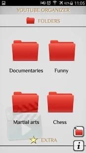 You can organize videos from youtube with this app. Share your preffered videos with this app, and organize them in folders, to watch them anytime.