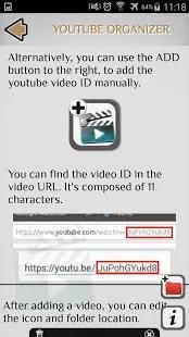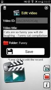 आप इस एप्लिकेशन के साथ यूट्यूब से वीडियो व्यवस्थित कर सकते हैं। इस एप्लिकेशन के साथ अपने preffered वीडियो साझा करें, और उन्हें किसी भी समय देखने के लिए फ़ोल्डर में उन्हें व्यवस्थित,।