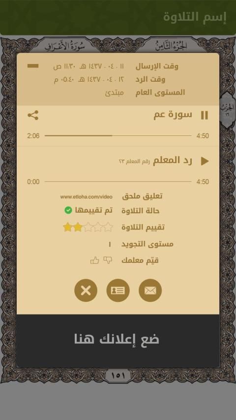 1. छल्ले में शिक्षण शेखों का अनुकरण विधि नागरिक गलती का चयन इलेक्ट्रॉनिक रूप Ma'lema आवेदन के द्वारा (Msahvk हाथ) बन गया कुरान छात्र में त्रुटि के घर का चयन भी माध्यम से कुरान आवेदन पर आवाज नोट जोड़ने के लिए एक माता पिता के लिए किया जाए या स्कूल में या छल्ले में जानता है से लाभार्थी हो सकता है ।