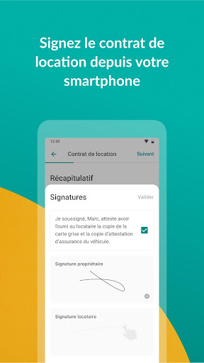वाहन की प्राप्ति पर, मालिक कार के अनुपालन को सुनिश्चित करने के लिए आपके साथ इन्वेंट्री बनाता है। आप अपने किराये के अनुबंध को ईमेल और आवेदन पर स्वचालित रूप से प्राप्त करेंगे। अपने किराये के अंत में, आप उसी तरह से वाहन नियंत्रण करेंगे और किराये का आकलन कर सकते हैं।