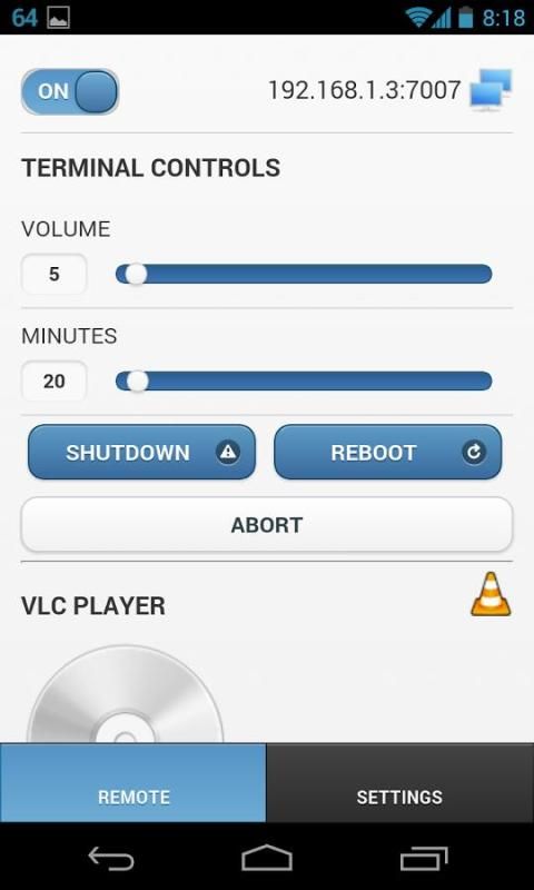 नोट: आप बिजली विकल्प / प्रणाली मात्रा विकल्पों को नियंत्रित करने के लिए सर्वर प्रोग्राम डाउनलोड करने की आवश्यकता होगी. आप यहाँ जानकारी पा सकते हैं: http://kantulabs.wordpress.com/pcremote-configuration/