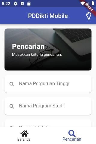 PDDikti Mobile merupakan aplikasi besutan Pusat Data dan Informasi Kementerian Riset, Teknologi, dan Pendidikan Tinggi berfungsi untuk pencarian data perguruan tinggi sebagai rujukan informasi perguruan tinggi dan memberikan kemudahan bagi para pengguna --khususnya bagi calon mahasiswa-- yang ingin mengakses informasi data seputar perguruan tinggi dimanapun dan kapanpun.