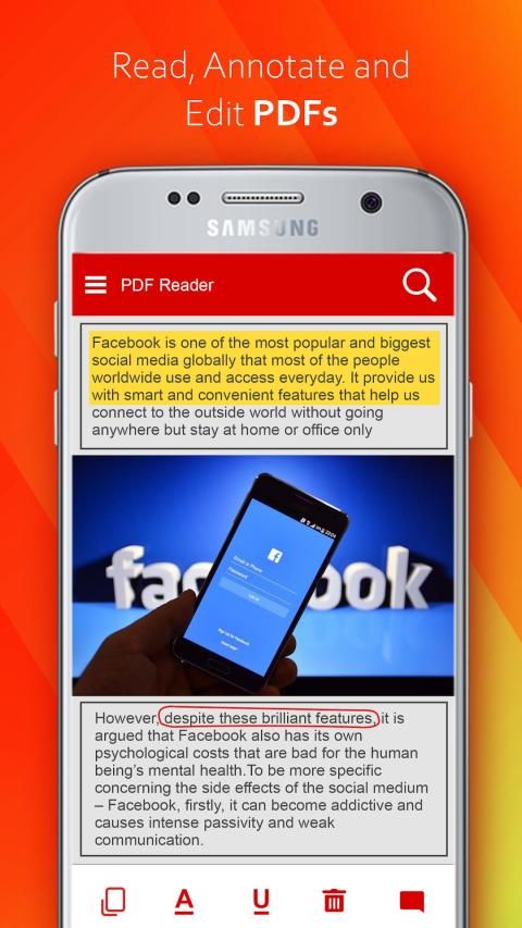 : पीडीएफ एडिटर फ्री: इस एप्लिकेशन की सबसे महत्वपूर्ण विशेषता पीडीएफ दर्शक है। आप आसानी से और जल्दी से पीडीएफ फाइलों की सामग्री को देख सकते हैं और अपने डिवाइस में दस्तावेजों को संपादित कर सकते हैं। कहीं से भी, आप अपने पीडीएफ को देखने के लिए इस एप्लिकेशन को जल्दी से लॉन्च कर सकते हैं।