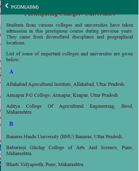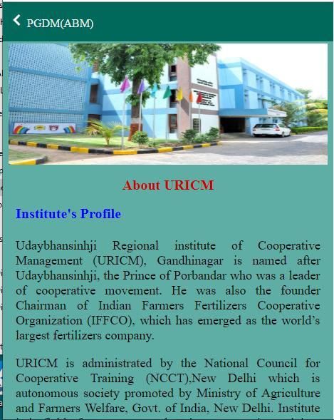 This app provide information about Post Graduate Diploma in Management ( Agri-business Management, 2 year, full time )approved by AICTE, New Delhi.