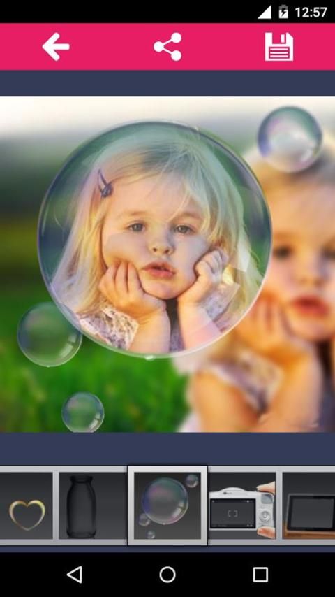 रंज कैमरा फोटो छवि प्रभाव app आप बोतल, दिल, कांच, हाथ, कैमरा, फ्रेम और अधिक की तरह प्रभाव में अपनी तस्वीर बनाने के लिए अनुमति देता है।