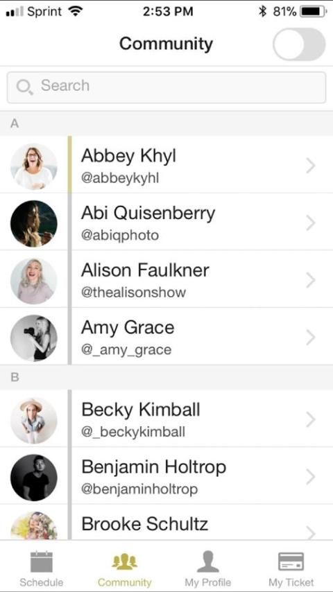 - उपस्थित व्यक्ति और प्रशिक्षक प्रोफाइल लोगों को आप को पूरा करने और प्रशंसा का पालन करें। तब उन है कि आप सम्मेलन में मुलाकात करने के लिए समुदाय को फ़िल्टर ताकि आप अपने काम का पालन करें और अपने पसंदीदा सामाजिक मीडिया प्लेटफार्मों पर उन लोगों के साथ जुड़ सकते हैं।