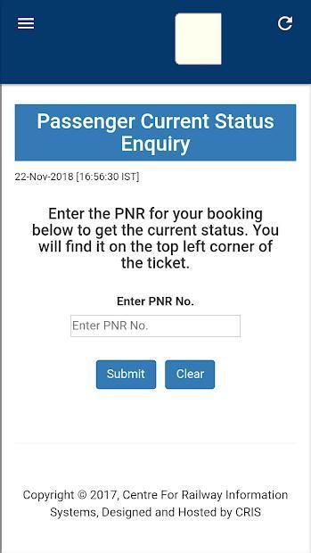 पीएनआर स्थिति पुष्टि पुष्टिकरण सीट या आरक्षण के लिए आवेदन सामग्री सीधे भारतीय रेल तक पहुंच जाती है।