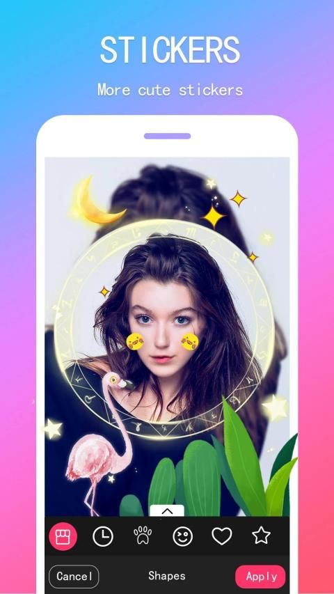 3. Along with effects on po camera, there is an option to pick image from gallery and apply different effects, stickers, frames, magazine covers and text on it.