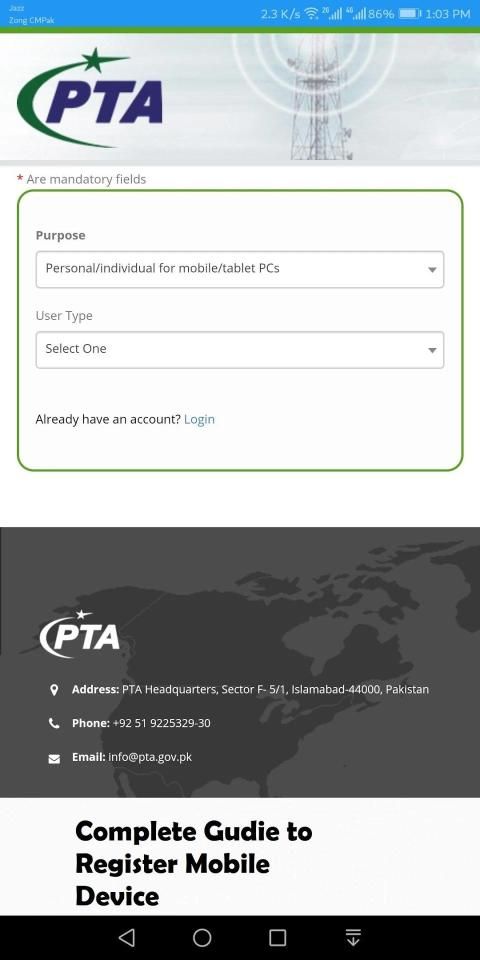 पीटीए पंजीकरण। पीटीए ऑनलाइन पंजीकरण। DIRBS पीटीए। DIRBS पीटीए मोबाइल पंजीकरण।