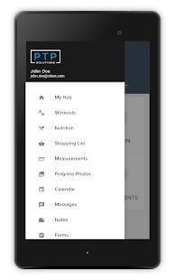 PTP Solutions is an online web and mobile application enabling clients to follow custom training and nutrition programs. With this app, you can complete workout programs, log daily nutrition, access exercise demonstration videos, and track progress and achievements while working towards your goals!