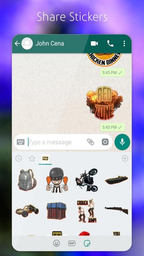 Installing PUB-G Stickers for WhatsApp app, you can share your character to your friends, family and colleagues.