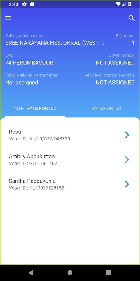4. When a BLO pickup a PWD voter from his/her home, MARK the voter as "MARK AS TRANSPORTED" from that voter's detail page.