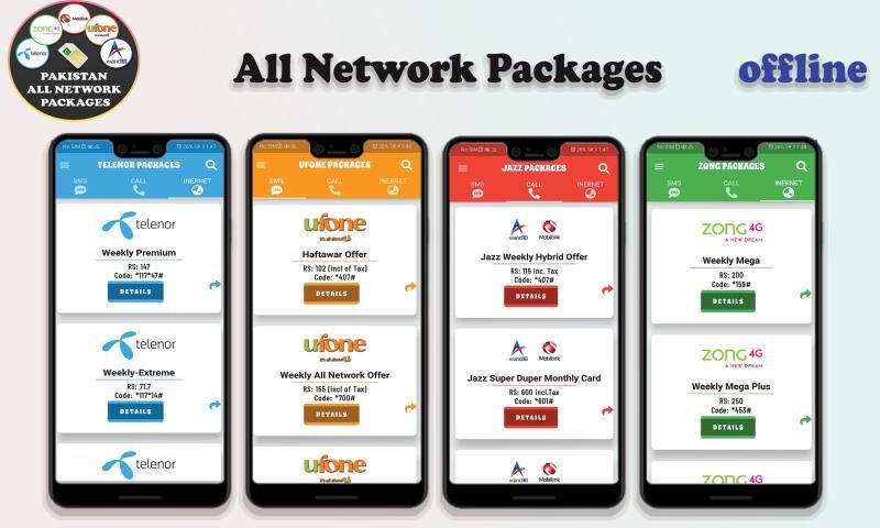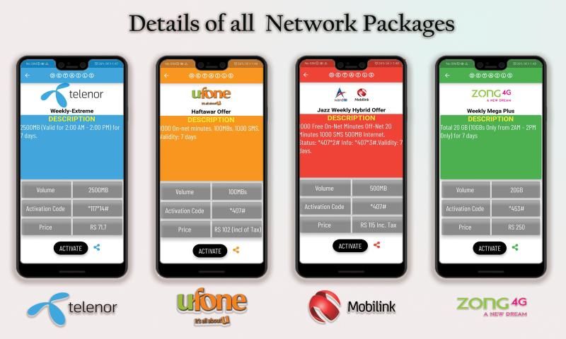पाक पैकेज में पाकिस्तान के सभी नेटवर्क के सभी नवीनतम पैकेज होते हैं।