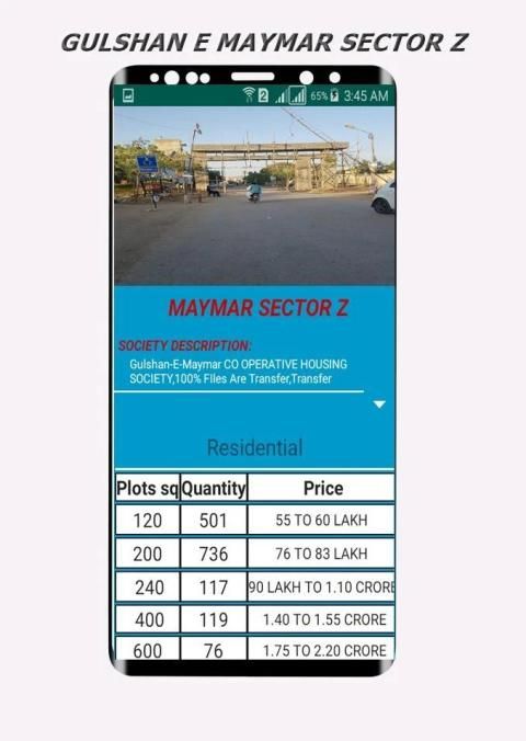 The app ensures that you land on the perfect property by giving you the details with plots market prices according to societie's range, type of property, area, and map of the society.