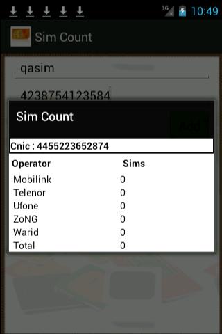 This application checks the number of sims issued on your name, CNIC is stored in app for convenient lookup. Verify pakistani sims in few seconds.