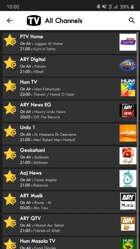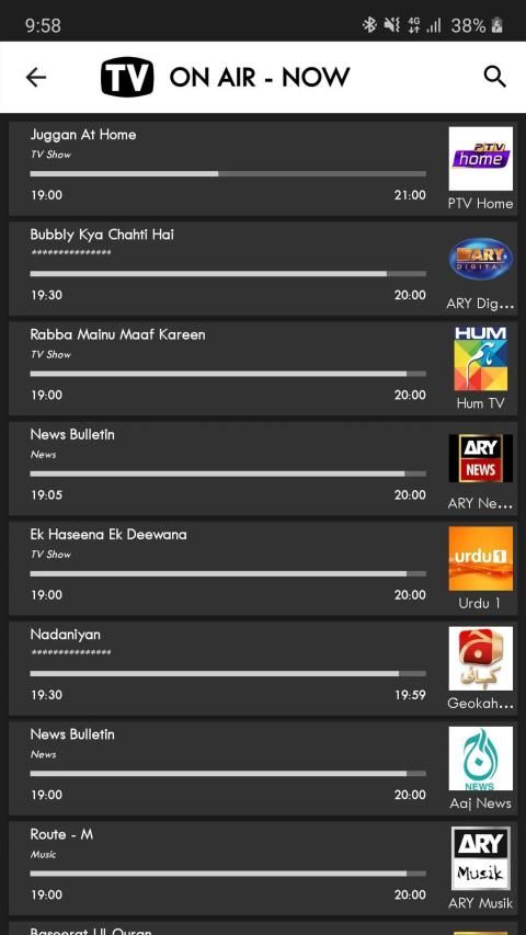 पाकिस्तान टीवी गाइड लिस्टिंग और टीवी कार्यक्रम पाकिस्तान में प्रसारित होने वाले सौ से अधिक पाकिस्तानी उर्दू और अंतरराष्ट्रीय टीवी चैनलों के कार्यक्रम जिनमें हर पाल, पीटीवी होम, एआरवाई डिजिटल, हम टीवी, उर्दू 1, जियोखानी, जीईओ टीवी, एपीएनए, हम मसाला टीवी और सिताराय, शामिल हैं। और अन्य ARY PTV चैनल