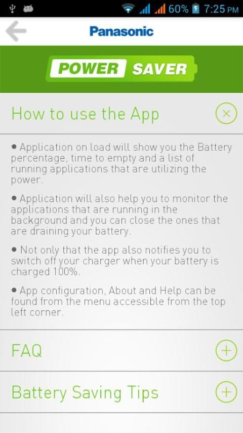 Panasonic Battery Saver App helps you...