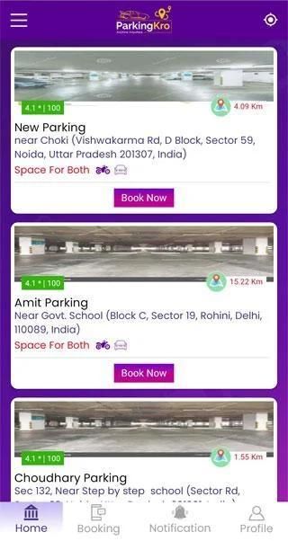 Parkingkro is a Geo-navigation map based app to find parking locations nearby your current location or for a specific address. The app lets you search and view paid parking spots with information on available facilities such as secured as well as roadside parking spots from multiple locations including bus stations, railway stations, public parking and airports.