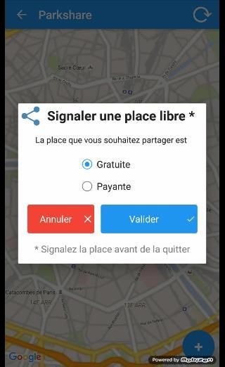Parkshare आपकी भागीदारी के माध्यम से काम करता है। दरअसल, जब एक पार्किंग की जगह (नि: शुल्क या भुगतान) या एक पार्किंग छोड़ रहा है, आप उपयोगकर्ता समुदाय है कि आप एक जगह को रिहा करने का संकेत मिलता है।