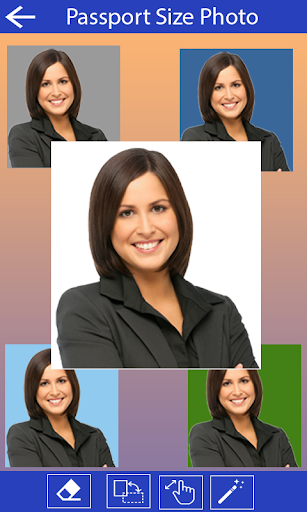 - पासपोर्ट फोटो के लिए विभिन्न आकार और पृष्ठभूमि रंग प्रदान करता है